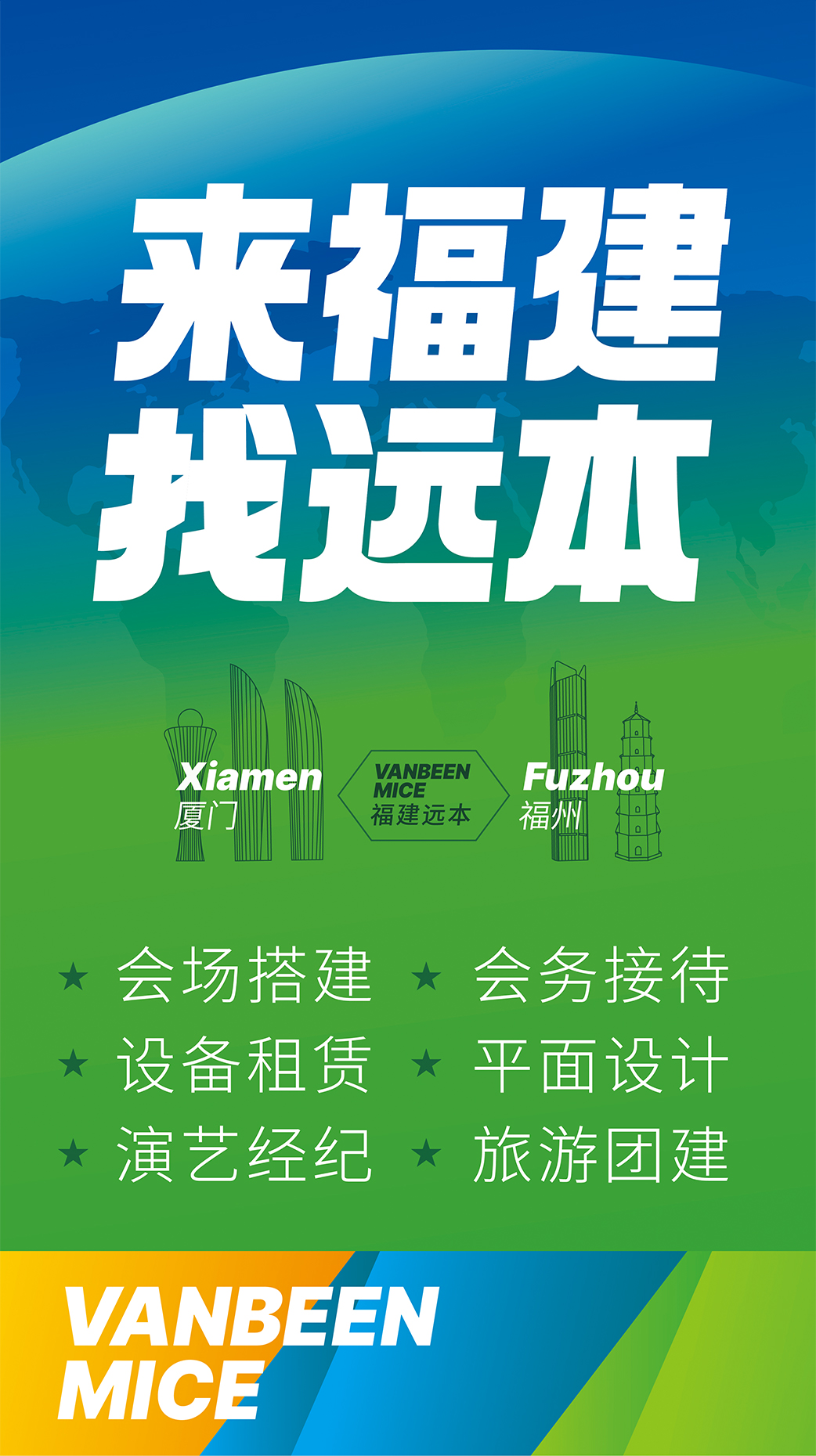廈門遠本成立于2013年,是一家集策劃設計、落地搭建以及會議接待等全案服務的DMC公司。公司擁有LED屏幕、燈光音響、木作工廠等專業舞美設備,擁有一批專業穩定的策劃設計和會務接待團隊,能夠快速、精準地為客戶提供優質的策劃、設計、搭建、接待等服務。公司已服務過華為、阿里、麥當勞、中國移動、??松梨凇⑴d業銀行、招商銀行、華潤三九、齊魯制藥、萬邦制藥等國內外知名企業,并成功入選中國國旅、中旅、康輝國旅、錦江國旅、中智商展、墨馬傳媒等國內知名PCO公司供應商庫。